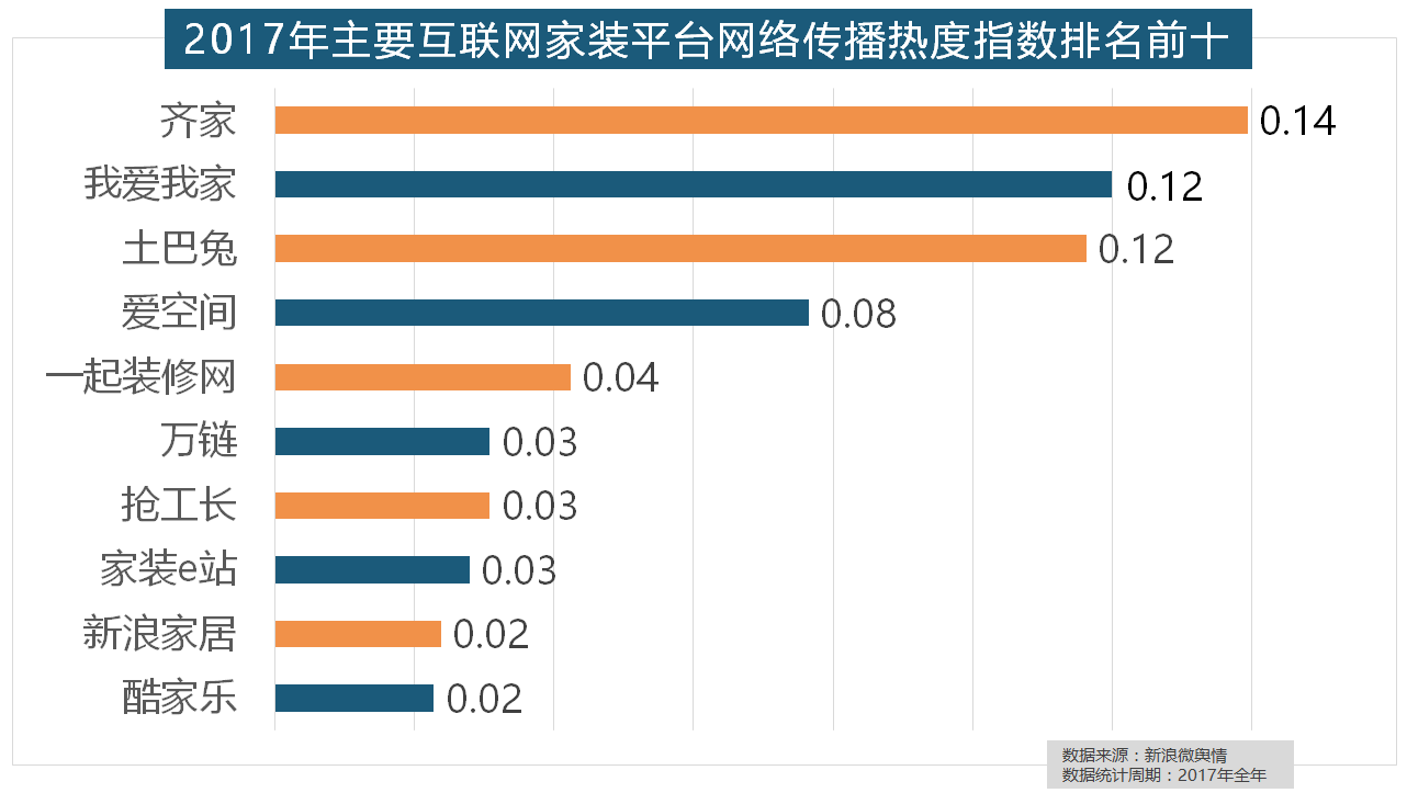 我们遴选了跨越500个品牌进行数据统计取阐发,占领年度壁纸品牌热度排行榜八到十位。2017年,正在次要家拆产物类别热度方面,欧派橱柜的收集热度指数较着高于其他橱柜品牌位列首位,据新浪微舆情对我国次要互联网家拆平台大数据阐发显示,一批具有必然规模的家拆设想公司也纷纷出现。取灯具类品牌热度榜一样,别的两个国产开关品牌公牛和德力西排列第八和第十位,占领第六到第十位。